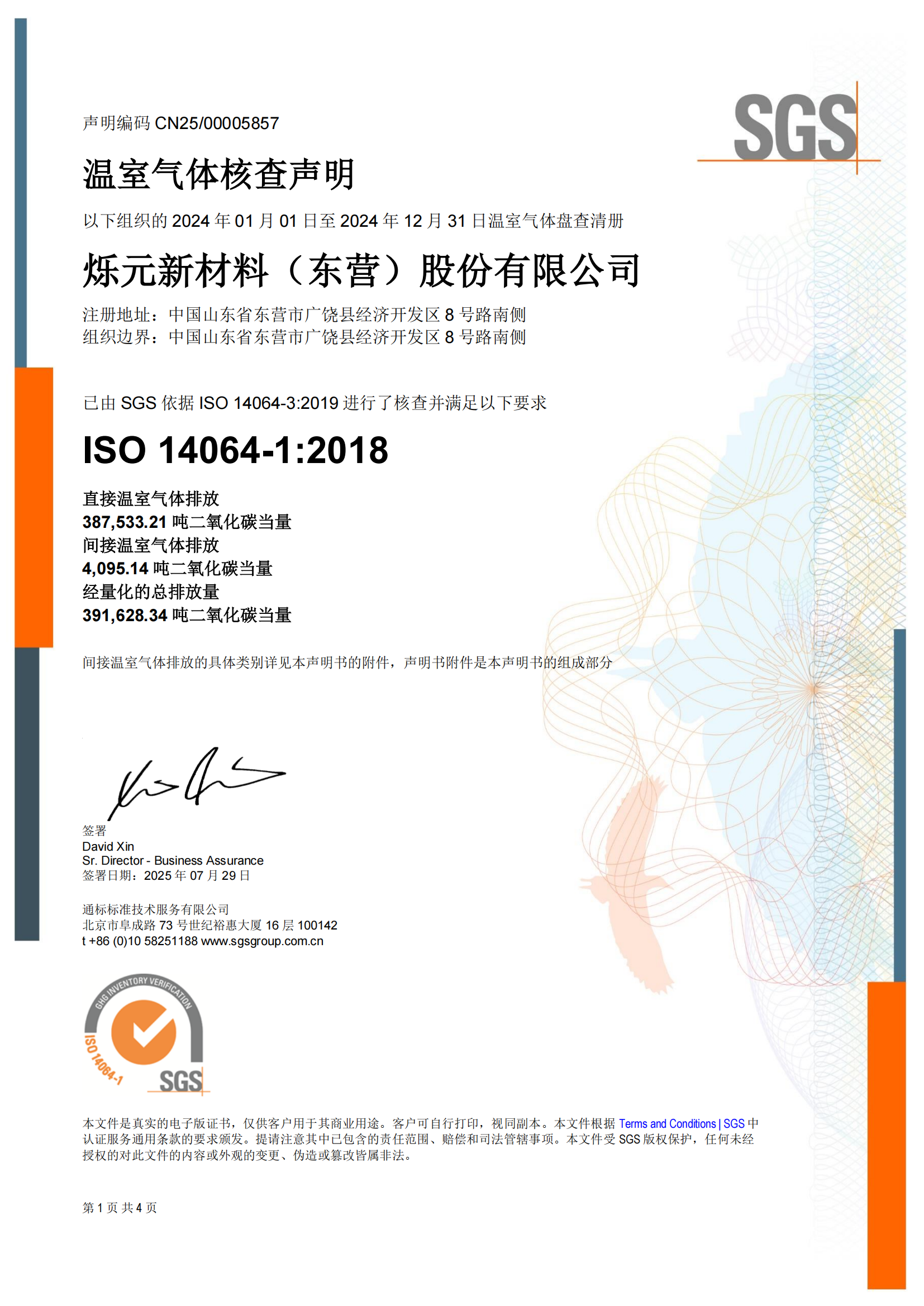 温室气体核查声明